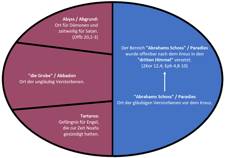 Das Urteil wird ohne Verzögerung vollstreckt: Alle, die in diesem Gericht vor dem grossen weissen Thron erscheinen werden, werden ausnahmslos in den Feuersee geworfen. "Dies ist der zweite Tod" – die ewige Trennung von Gott. Selbst der Tod - der Anspruch auf den Körper erhebt - und der Hades - der Anspruch auf die Seele erhebt - werden in den Feuersee geworfen, denn ihr Zweck ist nun beendet. Der physische Tod der Unerretteten, wie auch ihr Aufenthalt im Hades (Warteraum), ist nur vorübergehend, denn ihre endgültige und ewige Bestimmung ist "der zweite Tod" im "Feuersee."